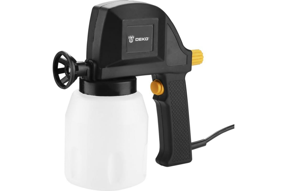 Электрический краскопульт DEKO DKSG150 018-1108 совместим с водно-меловыми и водно-известковыми составами.