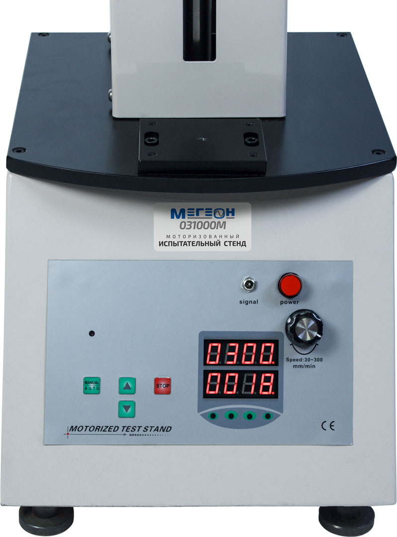 Моторизированный испытательный стенд МЕГЕОН 031000М предназначен для проведения испытаний с динамометрами МЕГЕОН серий 03ХХХ, 04ХХХ и 53ХХХ. Система управления позволяет осуществлять проведения испытаний в ручном или автоматическом режиме. В стенд установлен электродвигатель с увеличенным сроком службы и вал ШВП высокого качества. Плавность хода винта в установке осуществляется функцией бесступенчатого регулирования скорости; также имеется возможность провести настройки количества тестов или времени проведения испытаний. Для удобства работы мы применили автоматический счётчик количества тестов. Во избежании поломок и заклинивания элементов привода была установлена защита от перегрузки. Стенд успешно может использоваться для имитации нагрузок сжатия и растяжения, проведения тестов на излом, испытаний на усталость, разрыва и других видов испытаний.