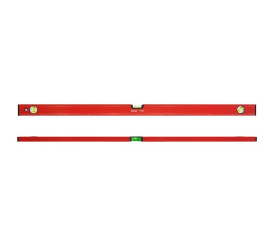 Линейка с ценой деления шкалы 1 мм сделает удобной разметку поверхностей. Подписи и отметки шкалы белого цвета на строительном уровне RGK U2100 выполнены методом гравировки и не истираются при контакте с такими поверхностями, как бетон или дерево.